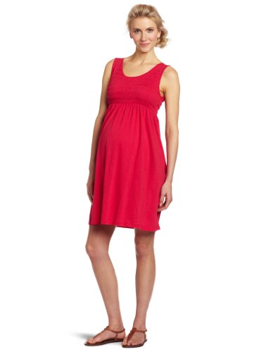 Three Seasons Maternity Women's Smocked Solid Dress, Peony Bloom, Medium Reviews
